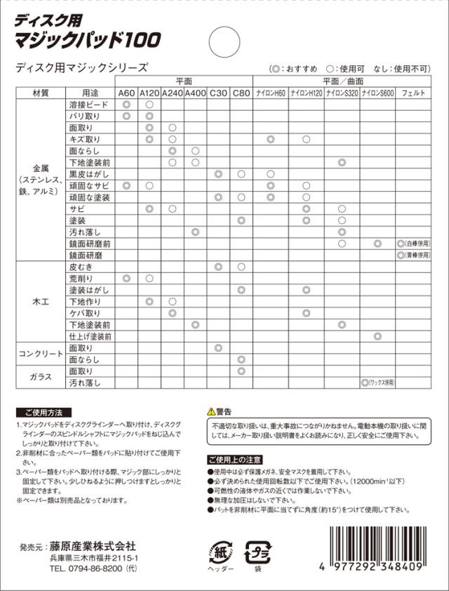 SK11 ディスク用 マジックパット 100 ディスクグラインダー専用に関する詳細なお問合せは下記までお願いします