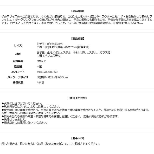 十二支お手玉 12匹のお手玉で指先体操 巾着袋つき 十二支お手だま 干支おてだま どうぶつお手玉セット 干支飾り 動物お手玉 お