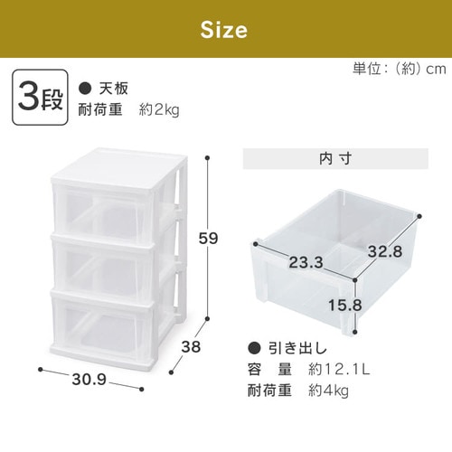 引き出し内寸:幅約23.3×奥行約32.8×高さ約15.8