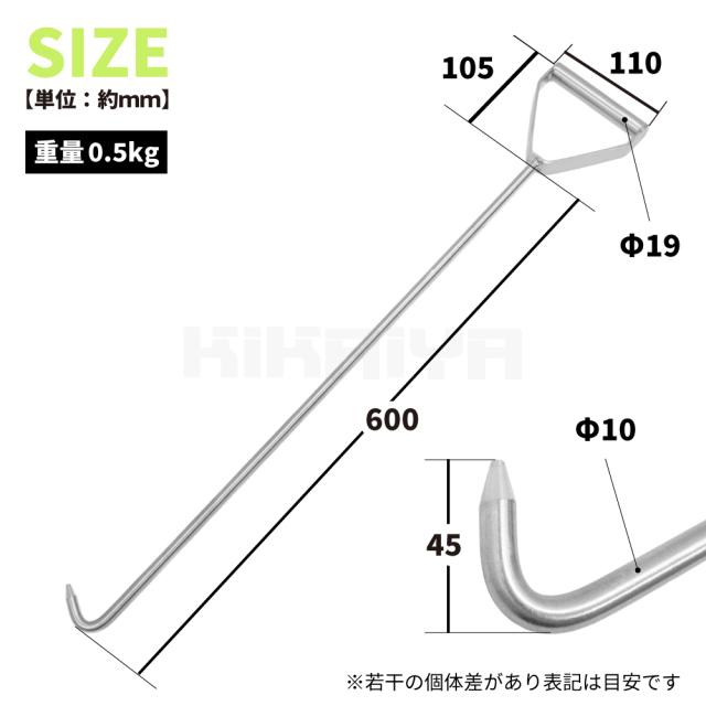パレットフック 600mm 全長約700mm ステンレス製 SUS304 パレット引っ張り棒 KIKAIYA