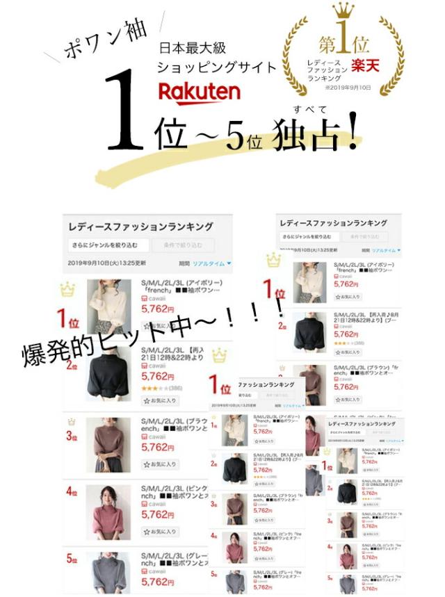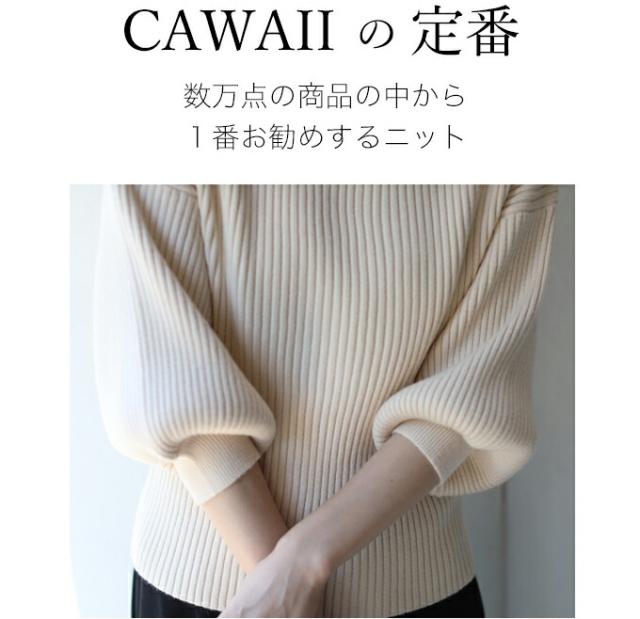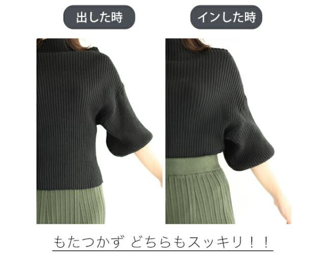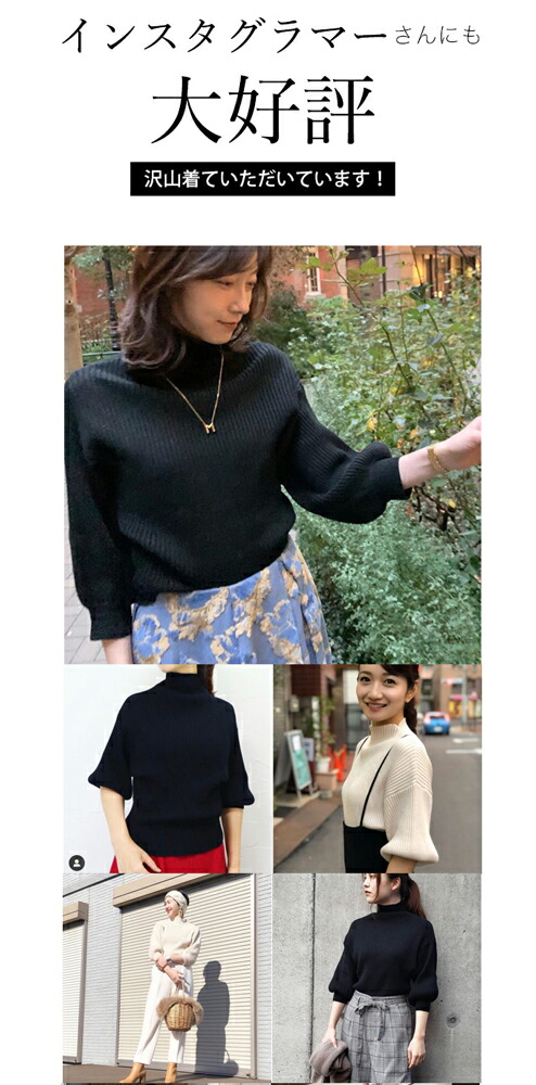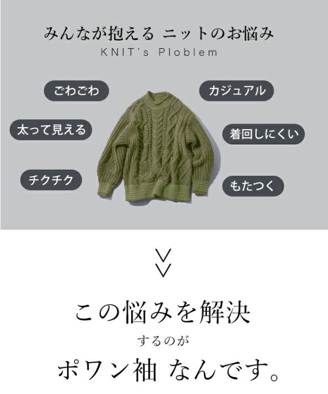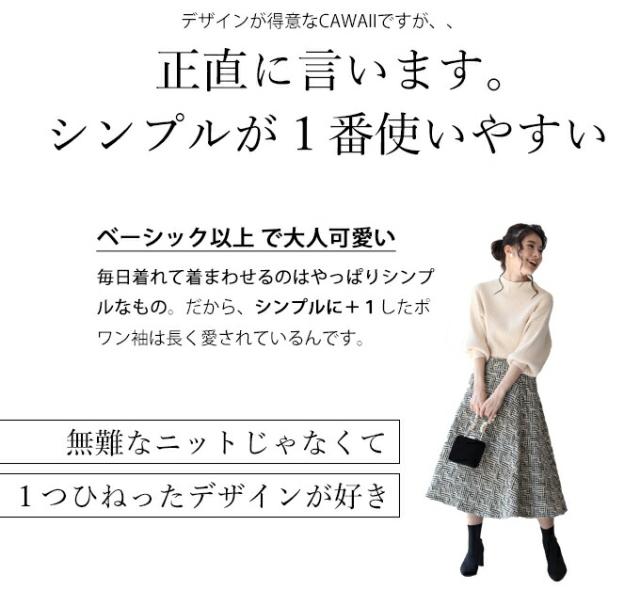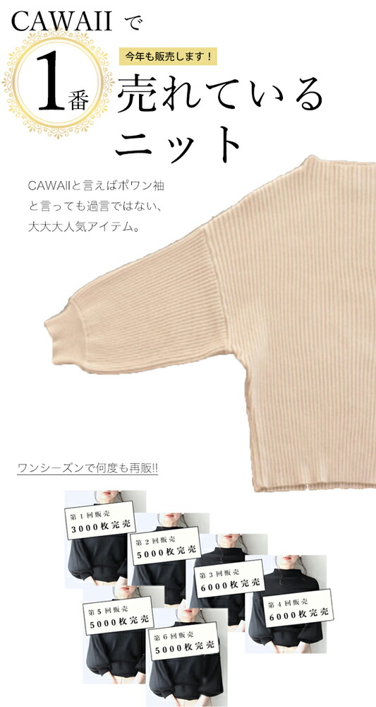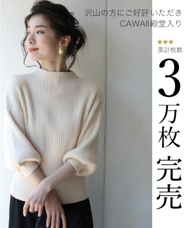 再入荷10月1日 袖ポワンとオフネックのニットトップス(S~L/2L~3L)(アイボリー)w8036-be cawaii ぽわん袖ニット ニット リブニット ハイネック 七分袖 五分袖 ゆるシルエットニット 体型カバー 春 秋 無地 大きいサイズ