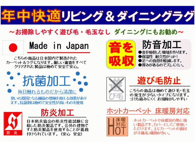 | 機 能 | 防ダニ加工(金鳥の防ダニ薬剤を使用しています。) 防炎 防音 抗菌 防臭 遊び毛防止 |