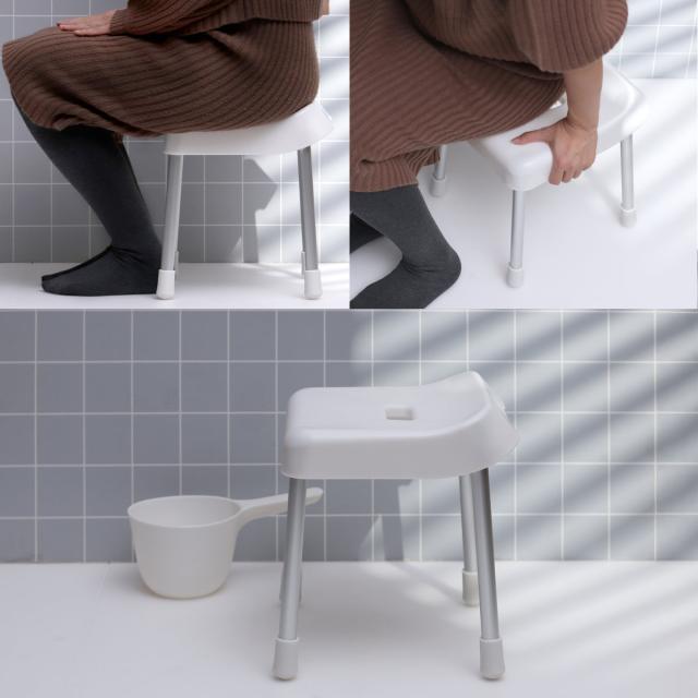 浴室カウンターの高さから「-5cm」が使いやすい風呂イスの高さ目安です。また、湯おけを床に置く方は高さ20〜25cm、カウンター付き浴室の方は30cm、立ち座りを楽に行いたい方は40cmがおすすめです。