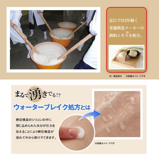 | 商品説明 | 「杜氏の手」の美しさに着目。近江の老舗酒造の酒粕エキスを配合。酒粕エキスが湧き出るウォーターブレイク処方による新感覚クリーム。 洗顔後、これ1つで6役(化粧水、乳液、美容液、クリーム、パック、透明下地)。 ※ウォーターブレイク処方とは…網目構造のシリコンの中に閉じ込められた水分が圧力を加えることにより網目構造が崩れて中から弾けでてきます。 |