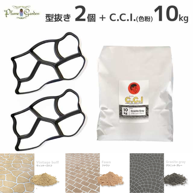 コンクリート 型枠 セメント 模様 型枠 DIY 石の型抜きコンクリート 鉄平石 石畳 石目調 アプローチ・パスメイク2個+顔料CCI 10kgセット