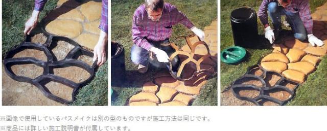 コンクリートをパスメイク(型)に流し込むだけで、オリジナルの石畳やアプローチができるDIYキット。