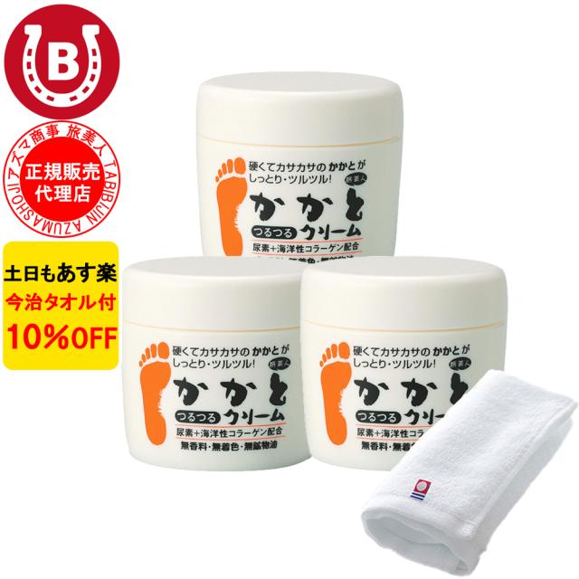 かかとクリーム 3個 アズマ商事 かかとつるつるクリーム 100g かかと 踵クリーム 角質 旅美人 10%OFF 今治タオル付 送料無料