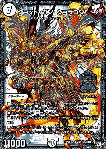 デュエルマスターズ 双極篇 ジョット・ガン・ジョラゴン(秘1)(マスタードラゴンレア) 轟快!!ジョラゴンGoFight!!(DMRP05)/タカラトミー/DMRP05-MD1-S1-MDR/デュエルマスターズ/デュエルマスターズ 双極篇 ジョット・ガン・ジョラゴン(秘1)(マスタードラゴンレア) 轟快!!ジョラゴンGoFight!!(DMRP05)/デュエルマスターズDMRP05 第1弾 轟快!! ジョラゴンGo Fight!!★デュエルマスターズ 双極篇 第1弾「轟快!!ジョラゴンGoFight!!」(DMRP05)収録 ■カード名:ジョット・ガン・ジョラゴン(秘1) ■レアリティ:マスタードラゴンレア ■種類:クリーチャー ■文明:ジョーカーズ ■種族:ジョーカーズ ■パワー:11000 ■コスト:(7) [特殊能力] ■このクリーチャーを召喚する時、ジョーカーズを好きな数バトルゾーンから自分の手札に戻し、その数だけ、召喚コストを1少なくしてもよい。 ■スピードアタッカー ■W・ブレイカー ■このクリーチャーが攻撃する時、カードを1枚引き、その後、手札を1枚捨てる。 ■ジョラゴン・ビッグ1:ジョーカーズを自分の手札から捨てた時、その「このクリーチャーがバトルゾーンに出た時」で始まる能力を1つ使ってもよい
