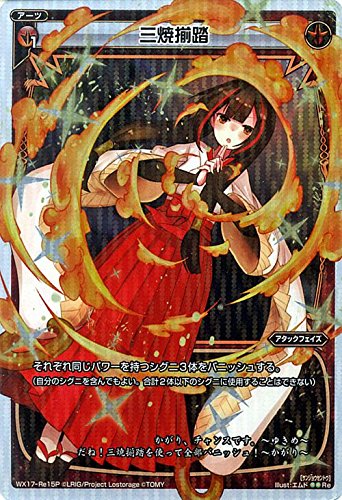 ウィクロス/三焼揃踏(再録)/エクスポーズドセレクター/タカラトミー/WX17P-Re15-Re/WIXOSS/ウィクロス/三焼揃踏(再録)/エクスポーズドセレクター/ウィクロスWX-17 エクスポーズド セレクター★ウィクロス「エクスポーズドセレクター」(WX17)収録 ■カード名:三焼揃踏 ■レアリティ:パラレル ■色:赤 ■カードタイプ:アーツ ■コスト:赤(1) ■使用タイミング:【アタックフェイズ】 [テキスト] それぞれ同じパワーを持つシグニ3体をバニッシュする。(自分のシグニを含んでもよい。合計2体以下のシグニに使用することはできない)
