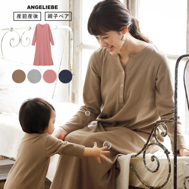 授乳服 マタニティ 服 ワンピース 親子コーデ リブ テレコ スラッシュ ネック ロングワンピース 妊婦服 長袖 マタニティワンピース
