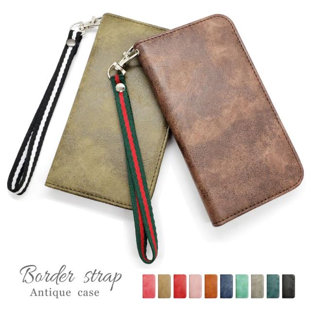 arrows 5G F-51A アローズ5G f51a スマホケース おしゃれ かわいい 手帳型ケース カバー ベルトなし ボーダー ストラップ 付き ビンテージ
