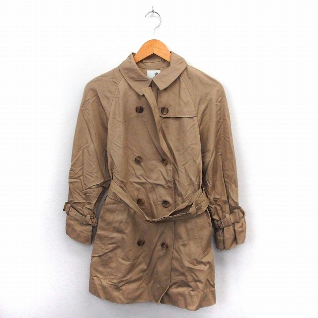 【中古】アースミュージック&エコロジー コート アウター トレンチコート ベルト ポケット シンプル S ベージュ