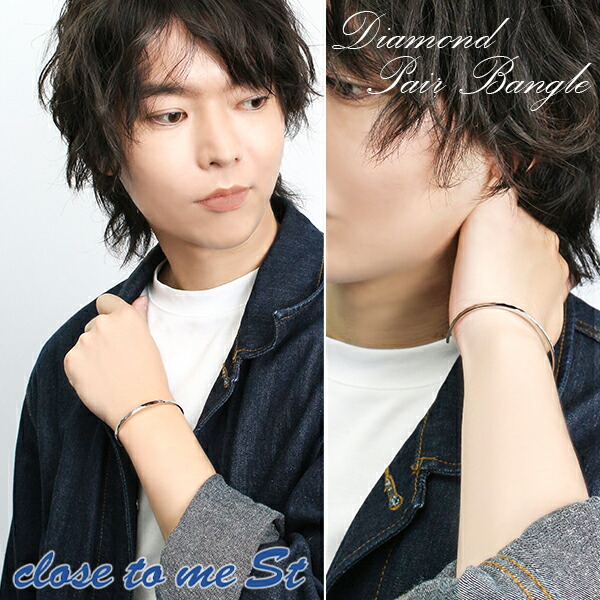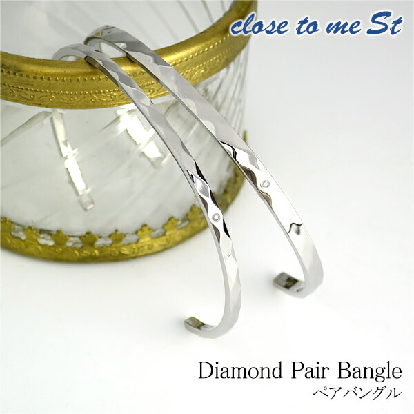 刻印無料 close to me St ステンレス ファ2本セットカット ダイヤモンド ペアバングル ペアアクセサリー バングル メンズ レディース