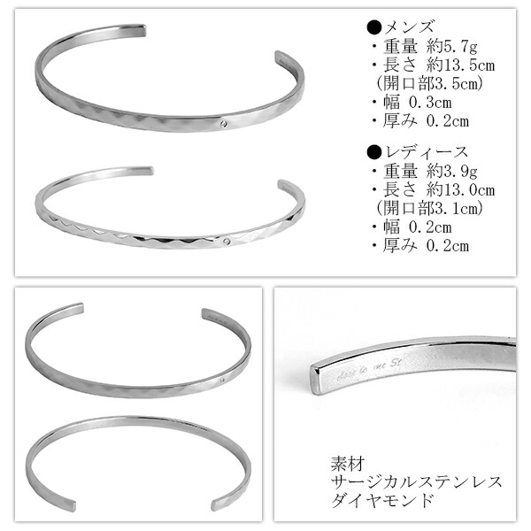 サージカルステンレス ペアアクセサリー 天然ダイヤ バングル ギフト【新宿 銀の蔵】