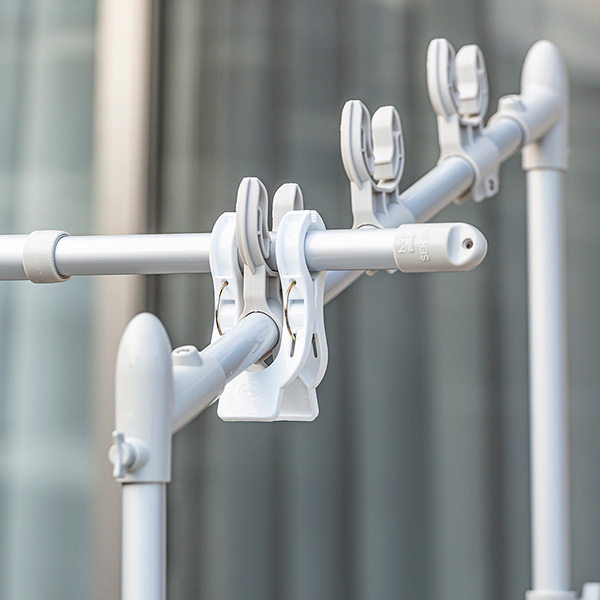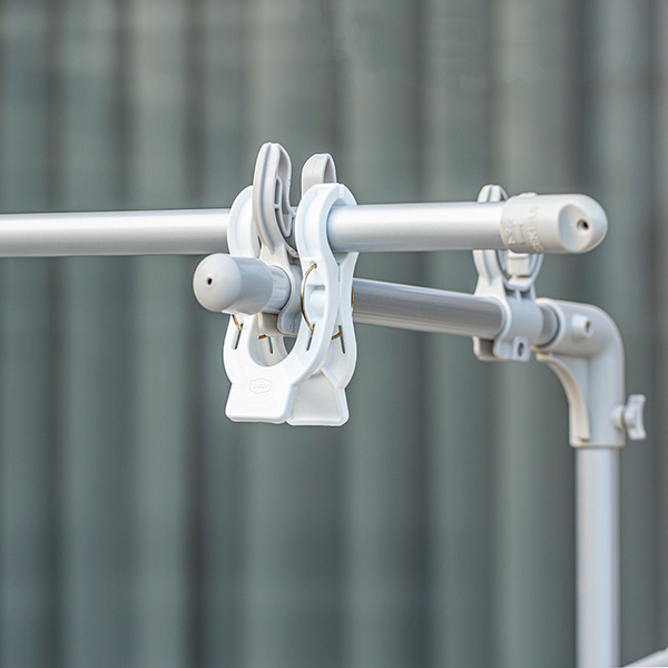 物干し竿に合わせられるホワイトカラーで、スッキリと見せることができます。
