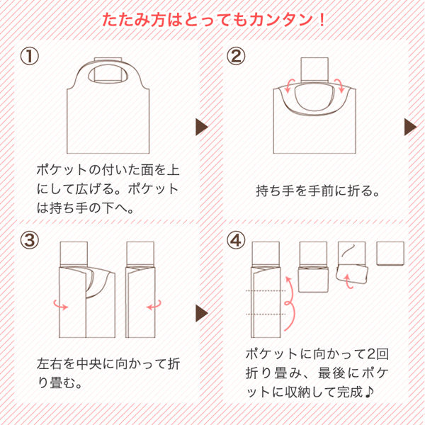 ●街中で目を惹くこと間違いなしの折りたたみ収納できるショッピングバッグです。