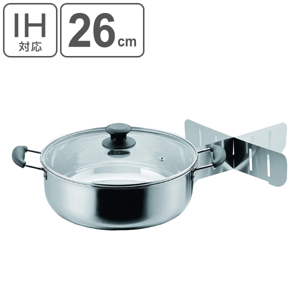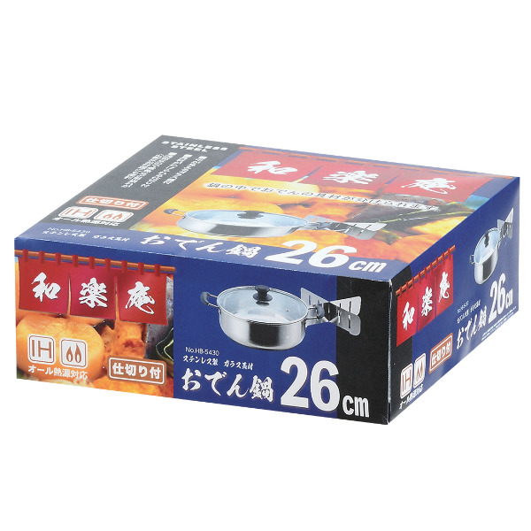 おでん鍋 IH対応 ステンレス ガラス蓋付き 和楽庵 おでん鍋 26cm 仕切付 ( ガス火対応 仕切り付き 仕切り鍋 26センチ 両手鍋 季節鍋 調理鍋 卓上鍋 万能鍋 おでん 湯豆腐 オール熱源対応 )