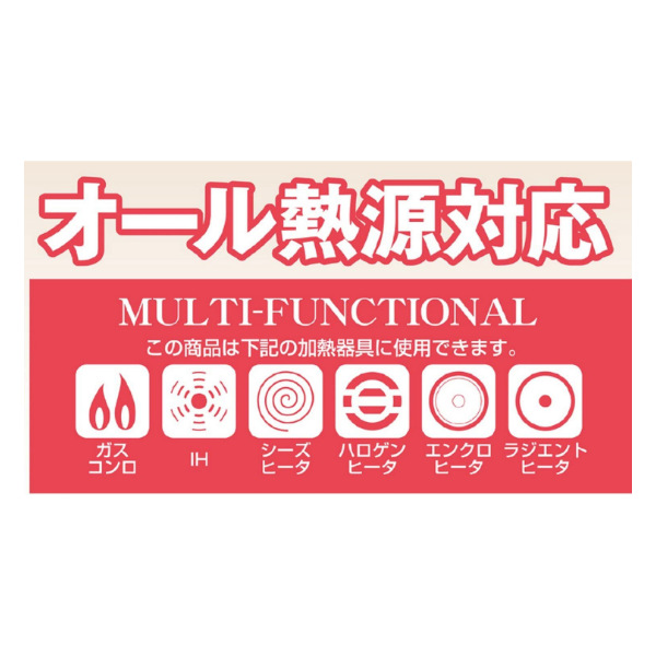 ガス火はもちろん、200VのIHクッキングヒーターやハロゲンヒーターなどオール熱源に対応しているので、カセットコンロ・IH調理器を使って卓上で楽むことができます。
