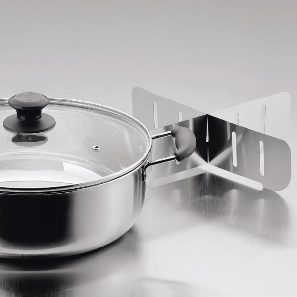 | 材質 | 本体:ステンレス鋼(クロム14%) 取っ手:フェノール樹脂(耐熱温度150度) 仕切:ステンレス鋼 蓋:強化ガラス(全面物理強化) 縁リング:ステンレス鋼 つまみ:フェノール樹脂(耐熱温度150度) つまみ座板:ナイロン(耐熱温度180度) |
