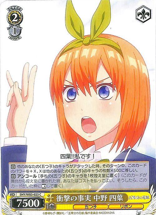 ヴァイスシュヴァルツ 五等分の花嫁 衝撃の事実 中野四葉 C 5HY/W83-023 キャラクター 五つ子 リボン 黄