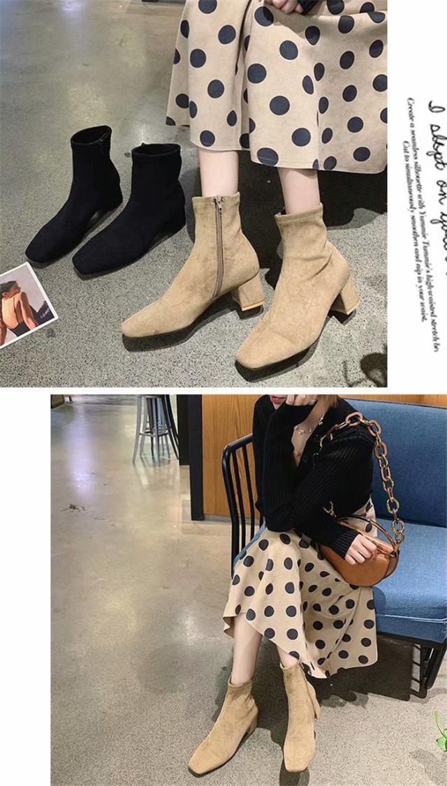 ショートブーツ レディース ブーツ ショート シューズ 厚底 ブーティ フェイクレザー ジッパー レトロ ソマリ レディースシューズ フェイクスエード 大きいサイズ 秋冬靴 歩きやすい 秋冬 袴