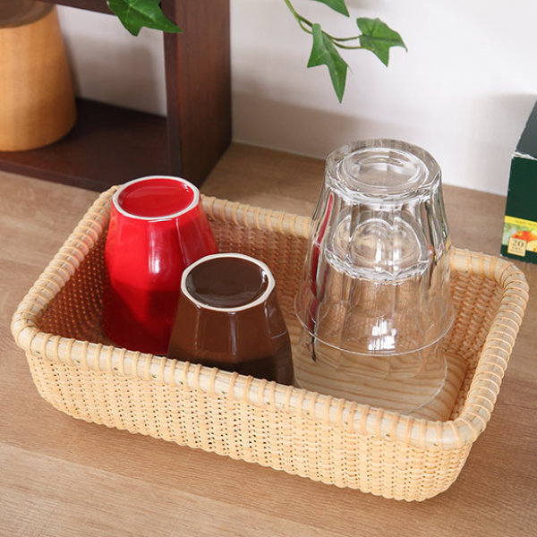 食器収納で意外と困りがちなコップ類。バスケットにまとめ、食器棚に収納しサッと取り出せます。また、机の上に飾って置けるインテリア収納としてもオススメです。