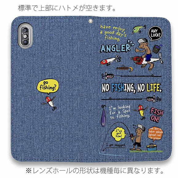 スマホケース 手帳型 ベルトなし iPhone17 Pro Max iPhone Air iPhone16e Pro Max 16 Plus 15 Pro Max 14 Plus Xperia 10 VII Galaxy AQUOS Pixel10 Pro XL 釣り 魚 ルアー 釣りざんまい 釣りに行きませんか?_カラフルデニム風