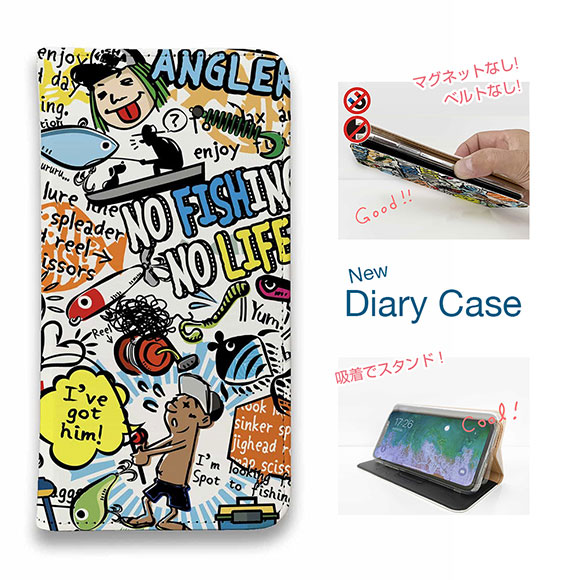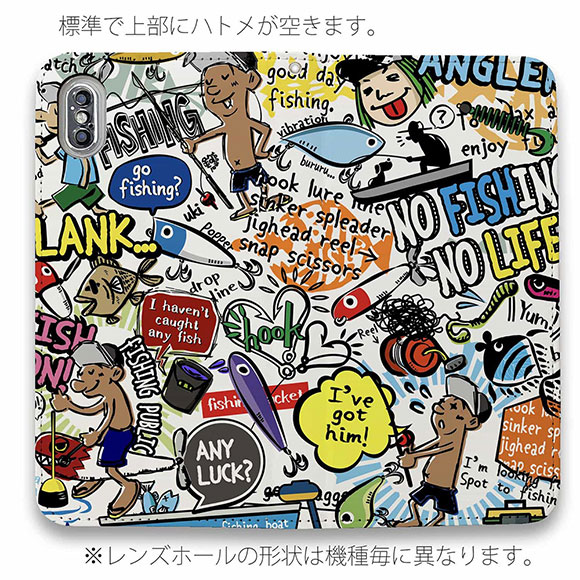 スマホケース 手帳型 ベルトなし iPhone17 Pro Max iPhone Air iPhone16e Pro Max 16 Plus 15 Pro Max 14 Plus Xperia 10 VII Galaxy AQUOS Pixel10 Pro XL 釣り 魚 ルアー 釣りざんまい 爆釣アーティスティック_ホワイト