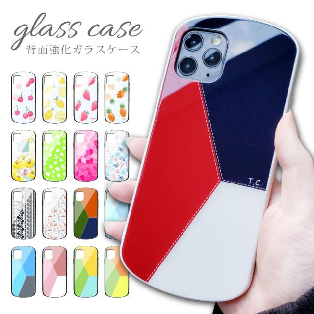 iPhone SE (第2世代) iPhone SE2 iPhone8 iPhone7 ケース 背面ガラス TPU 花柄 ハワイ ホヌ マリン レモン スイカ イチゴ フルーツ柄 かわいい おしゃれ スマホ ケース カバー 耐衝撃 強化ガラス