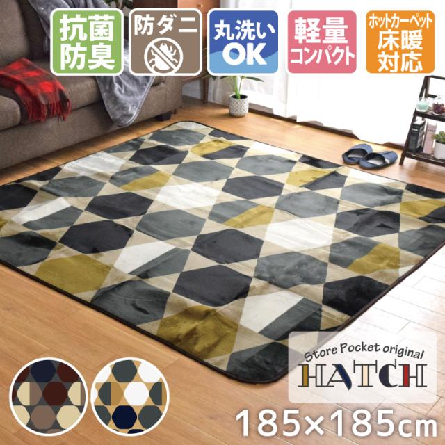ラグ ラグマット 2畳 ラグカーペット カーペット おしゃれ 185×185cm 北欧 洗える こたつ敷き ホットカーペット対応 抗菌 防臭 防ダニ ハッチ