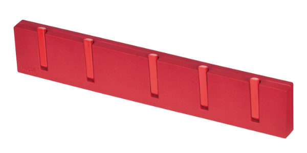 強力なマグネットでレンジフードや冷蔵庫に取り付けできる5連フックです。別売りの専用吸着盤を付けるとタイル面などにも取り付け可能になります。