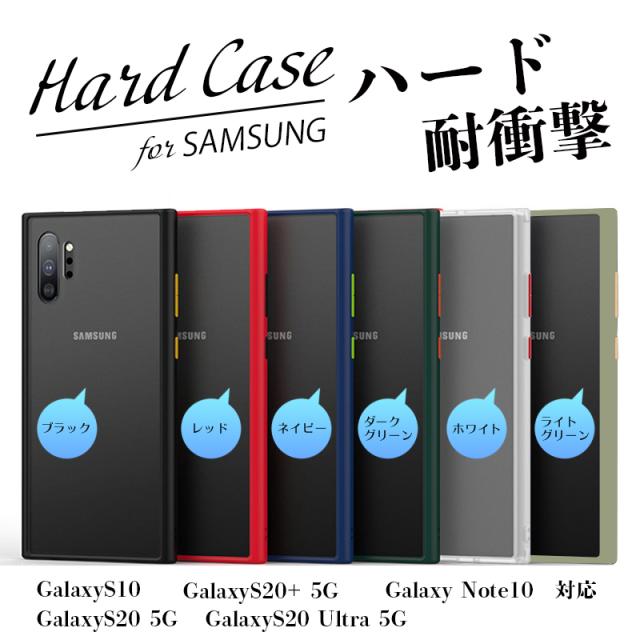 Galaxyシリーズに対応した耐衝撃マットハードケースです●ケース表面には、傷に強い高強度PC(ポリカーボネート)素材を採用しました●表面はツヤ消しのマット仕上げで、滑りにくく手触りも良好です●耐衝撃構造で、落下時のダメージを軽減し、あなたの大切なスマホを守ります●フレームは強度だけでなく柔軟性を兼ね備えており、スマホの脱着が簡単です●ワイヤレス充電対応のため、ケースをつけたまま充電が可能です●カメラホール部に厚みがあり、下向きに置いてもカメラが机に直接触れず傷付きません●長期間使用でも黄ばみにくい高品質素材●日常でもビジネスでもどんな場面にでもマッチするシックなカラー、全6色からお選び頂けます※ディスプレイ環境によって、画像の商品イメージが実物と異なることがございます※画像にあるカメラホールの位置は対応機種によって異なります●カラー: ブラック / レッド / ネイビー / ダークグリーン / ホワイト / ライトグリーン●対応機種: ・GalaxyS20 5G・GalaxyS20+ 5G・GalaxyS20 ultra 5G・GalaxyS10・GalaxyNote10●素材: PC(ポリカーボネート)