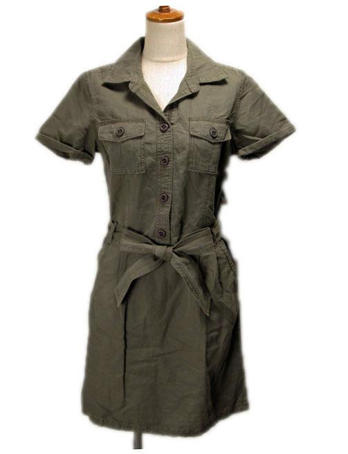 【中古】エディーバウアー EDDIE BAUER ワンピース ミリタリー 半袖 コットン リネン P4 緑 レディース