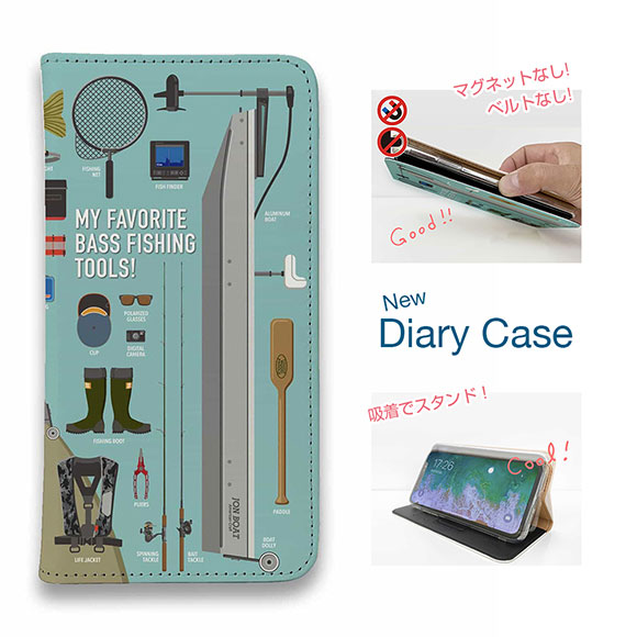 スマホケース 手帳型 ベルトなし iPhone17 Pro Max iPhone Air iPhone16e Pro Max 16 Plus 15 Pro Max 14 Plus Xperia 10 VII Galaxy AQUOS Pixel10 Pro XL 釣り 魚 ルアー FISH MAN My Favorite BassFishing Tools!