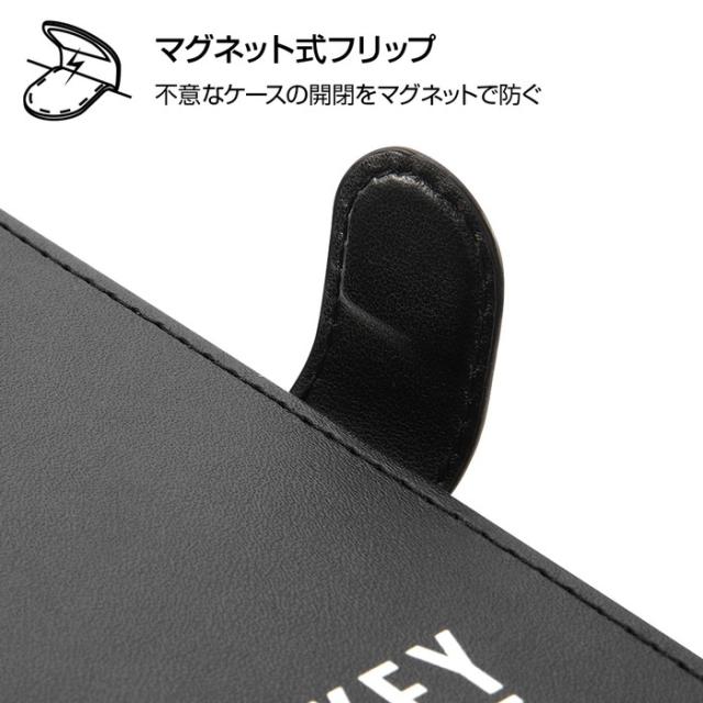 ディズニーキャラクターのアートデザインが全面にプリントされたマグネット付きレザーケース。