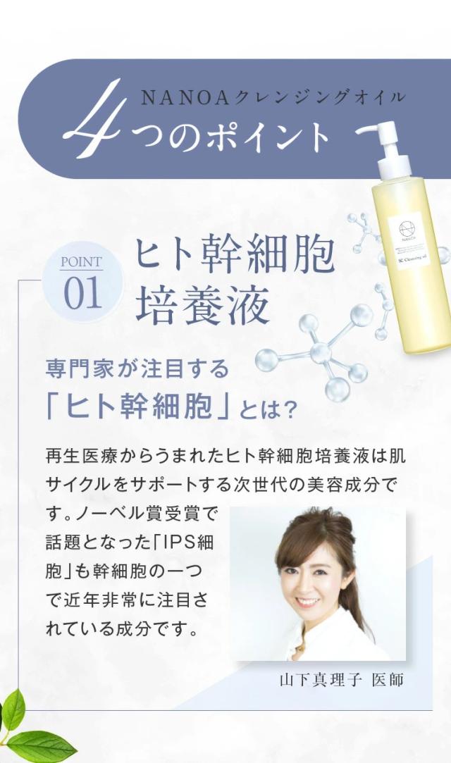 ◆「落とす×潤う どちらも叶う。」 ナノアクレンジングオイルは、「メイク落ち×敏感肌処方×高保湿」の3つを叶えるために研究開発をした誕生したオイルクレンジングです。話題の整肌成分「ヒト幹細胞培養液」を贅沢に配合しています。