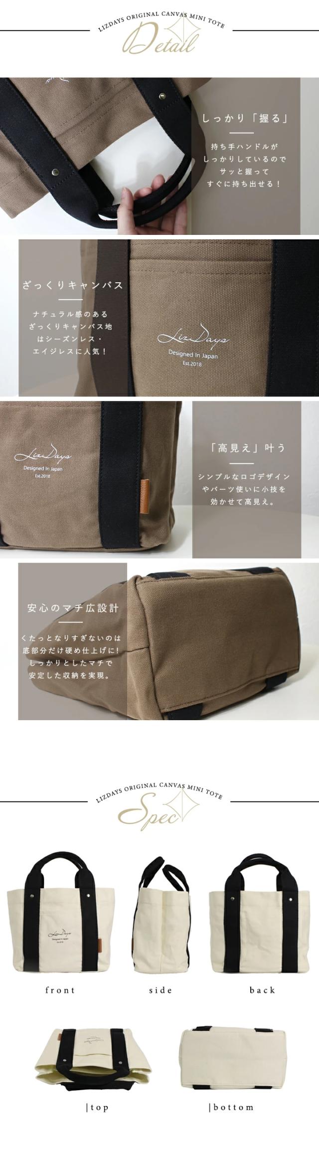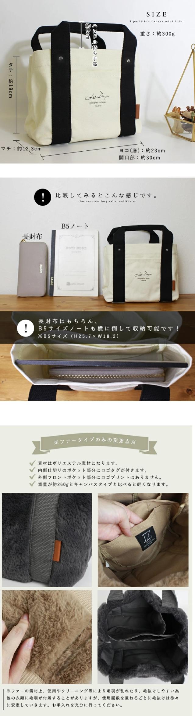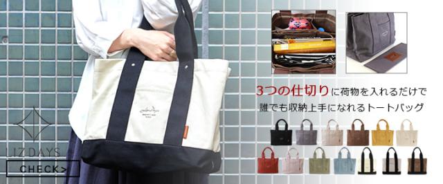 キャンバス トートバッグ レディース ミニバッグ ハンドバッグ トート 3つ仕切り ランチバッグ おしゃれ かわいい LIZDAYS リズデイズ ミニトート B5 多収納 シンプル コットン 帆布 ナチュラル 弁当 通勤 通学 便利【lz-7030】