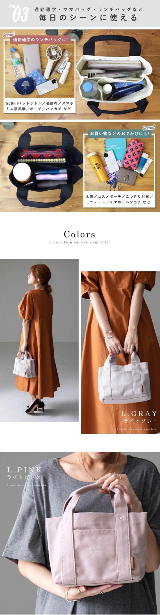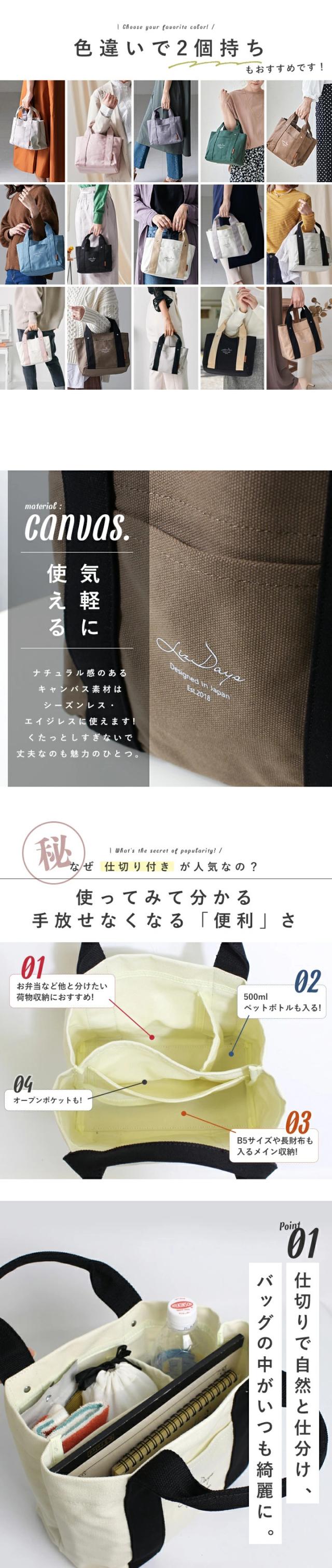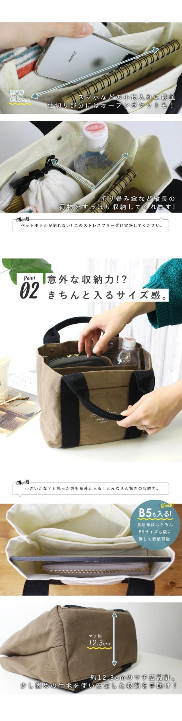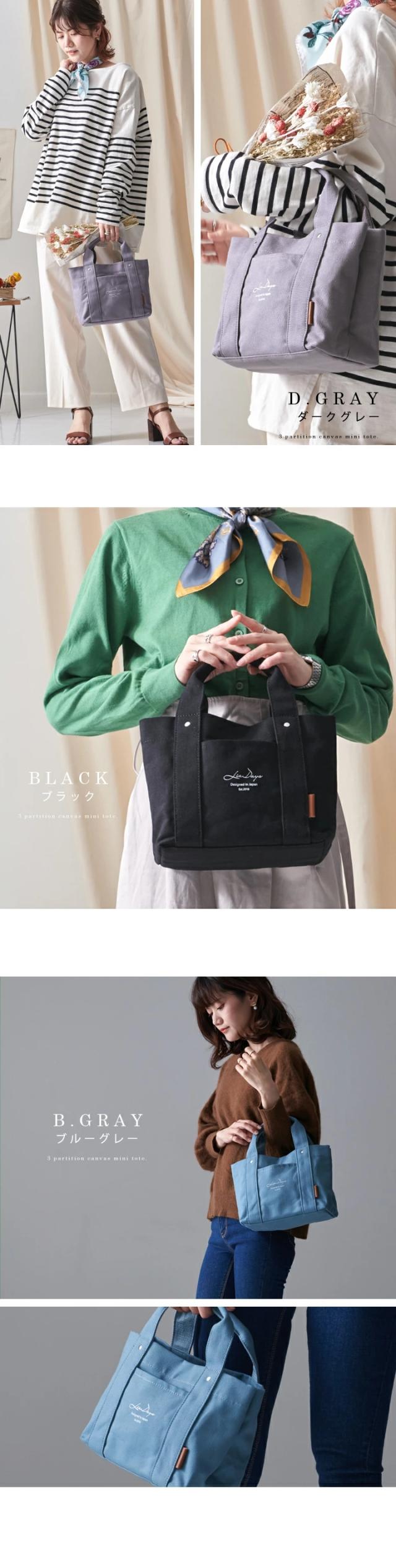 3仕切り&マチ広の多収納さが魅力のキャンバスミニトート!