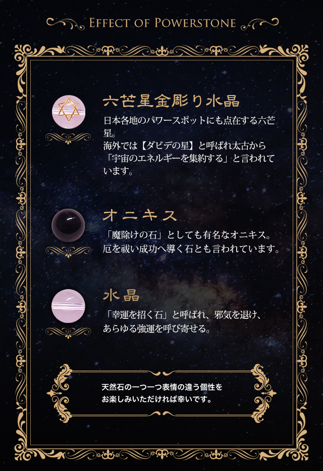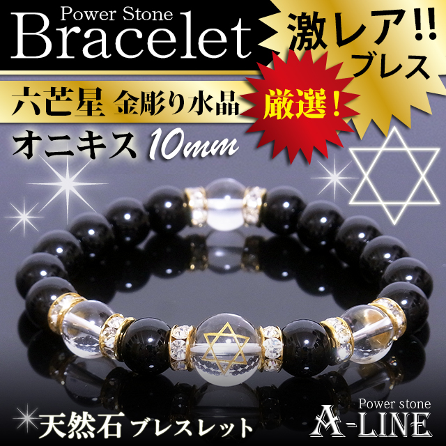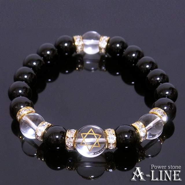 パワーストーン ブレスレット 金彫り六芒星水晶12mm&オニキス10mm PW-3424