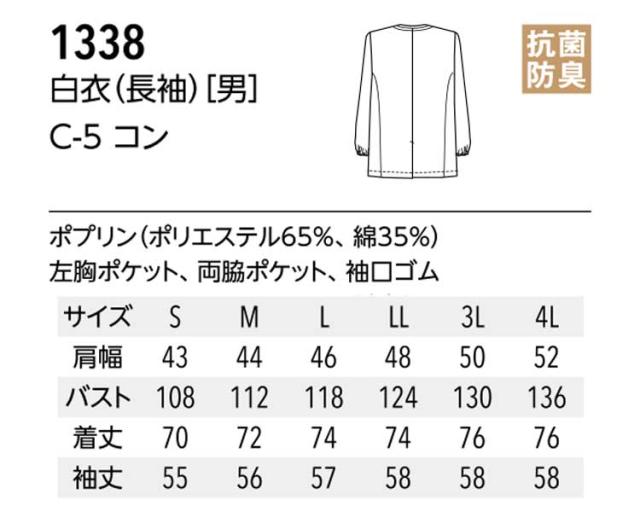 飲食サービス系ユニフォーム アルベ arbe チトセ chitoseメンズ 白衣(長袖) 1338 通年