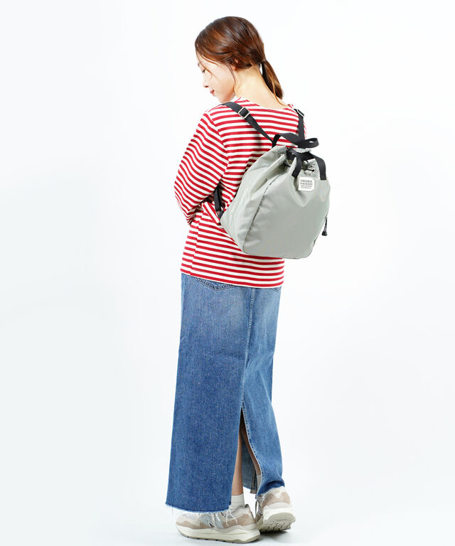 口が大きく開く巾着タイプで、荷物の出し入れもスムーズ。