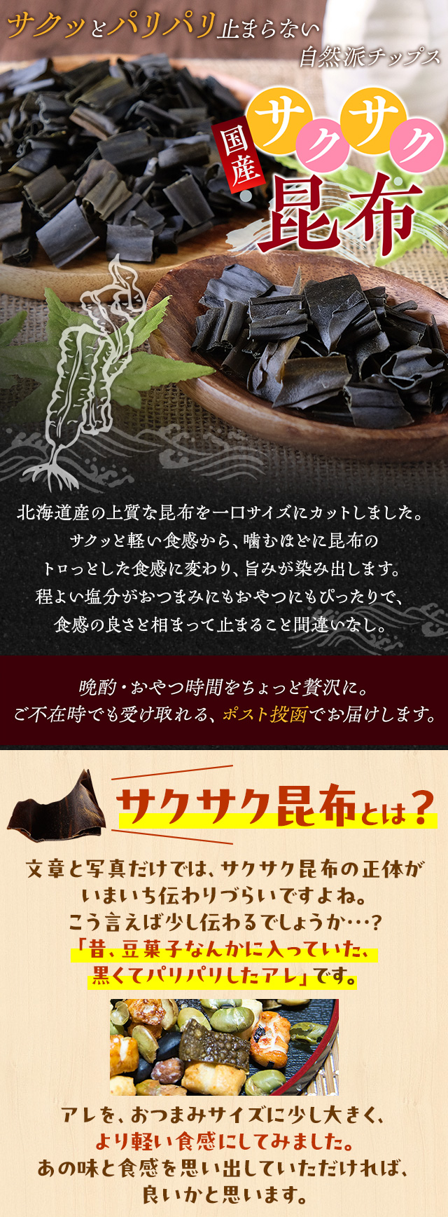 おつまみ昆布 サクサク昆布 国産 150g おやつ おつまみ 珍味 パリパリ昆布 おつまみ研究所 ネコポス 送料無料