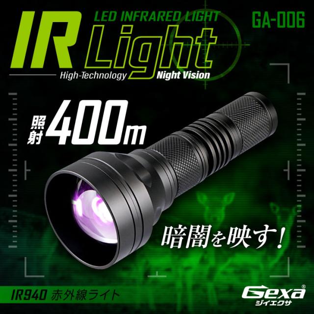 赤外線ライト 赤外線LED ナイトビジョン 暗視 赤外線撮影 IR 940nm 照射400m 不可視 GA-006 Gexa ジイエクサ