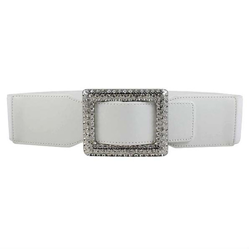 LAZA 【ホワイト/ブラック】【大きな 幅広 ゴムベルト】 レディース ベルト キラキラ ラインストーン バックル エレガント