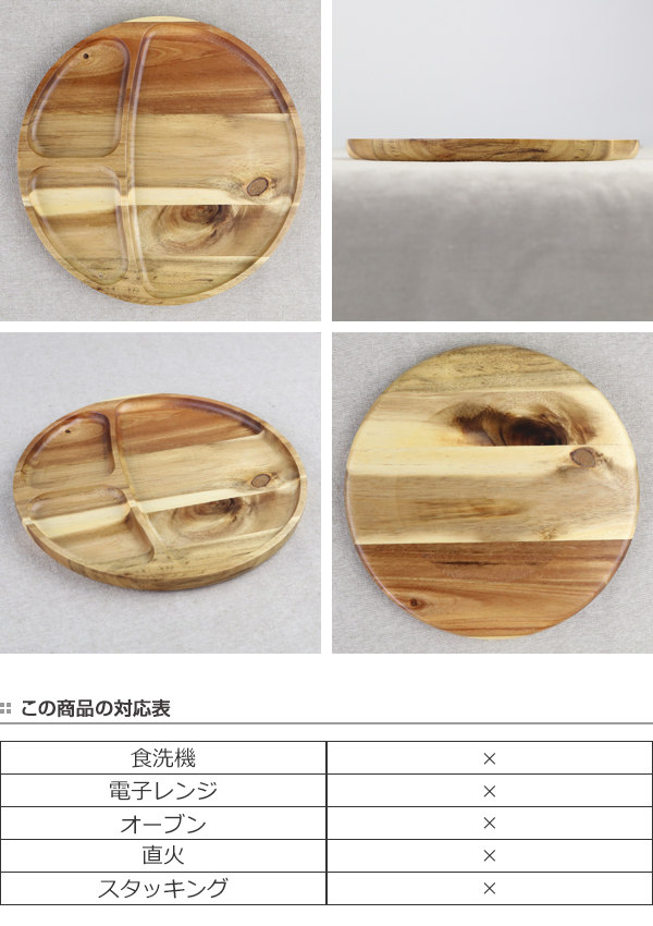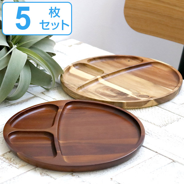 ランチプレート 23cm ラウンド カフェ 皿 食器 木製食器 天然木 ( 木製 仕切り皿 丸 トレー 木製プレート 木目 ランチ皿 ワンプレート お盆 木 メイン皿 おしゃれ )