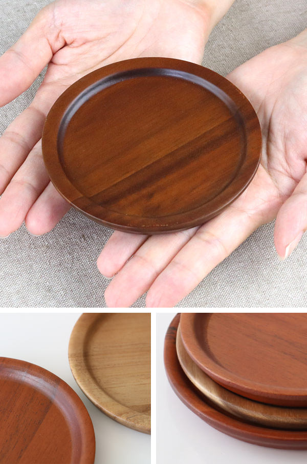 コースター M 10cm カフェ 木製 天然木 フタ ( 丸 トレー 木製コースター 木目 ウッドコースター 木 茶托 グラスマット おしゃれ )