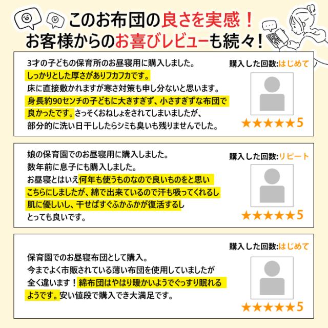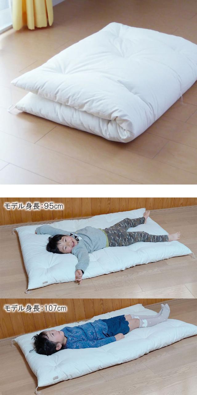 ふっくらとボリュームがあってやわらかいお布団保育園や幼稚園のフローリングでのお昼寝でも安心です。