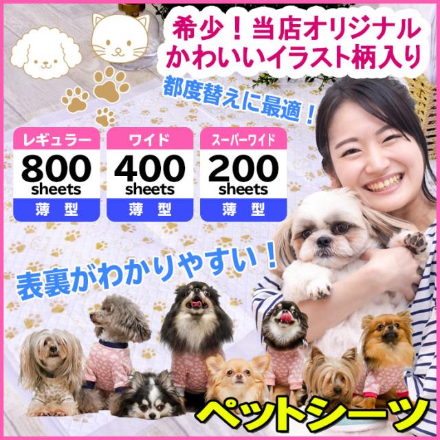★プリント柄入り★ ペットシーツ レギュラー 800枚 ワイド 400枚 スーパーワイド 200枚 薄型 ペット シート シーツ ペットシート ペット用 犬 猫 おしっこシーツ トイレ 1回 使い捨て