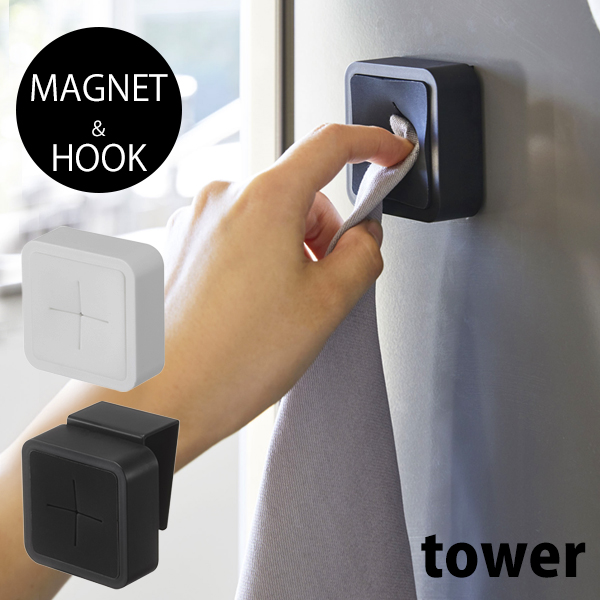 タワー タオルホルダー マグネット シンク扉タオルホルダー tower おしゃれ タオルハンガー タオル掛け ふきん掛け ホワイト ブラック フック キッチン用品 戸棚下 洗面台 扉