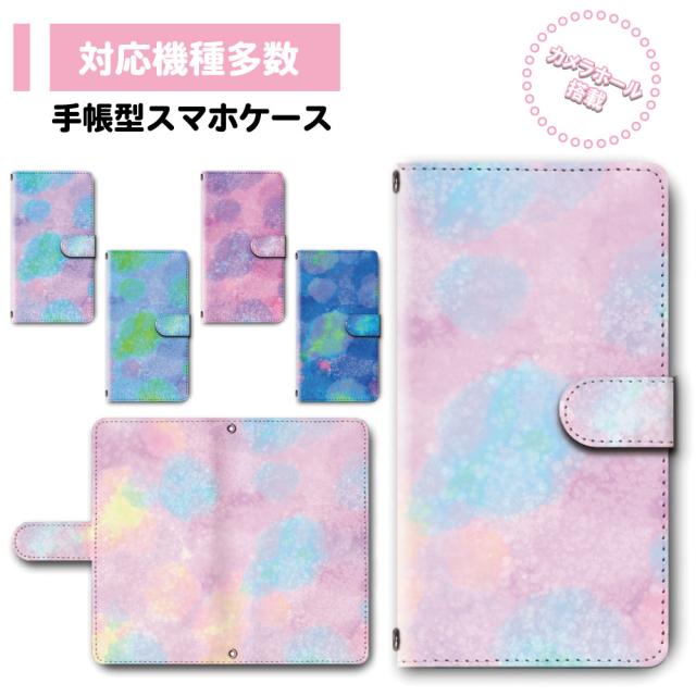 スマホ ケース カバー 手帳型 多機種対応 LGV36 OPPO Google Pixel 送料無料 ファンシー ゆめかわいい 病みかわいい 水彩風 ピンク パープル / dc-346